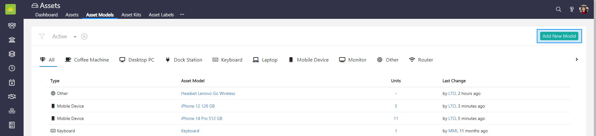 To add a new asset model, go to the Assets module and click on the Asset Models tab. Click on the Add New Model button in the top right corner of the Asset Models window.