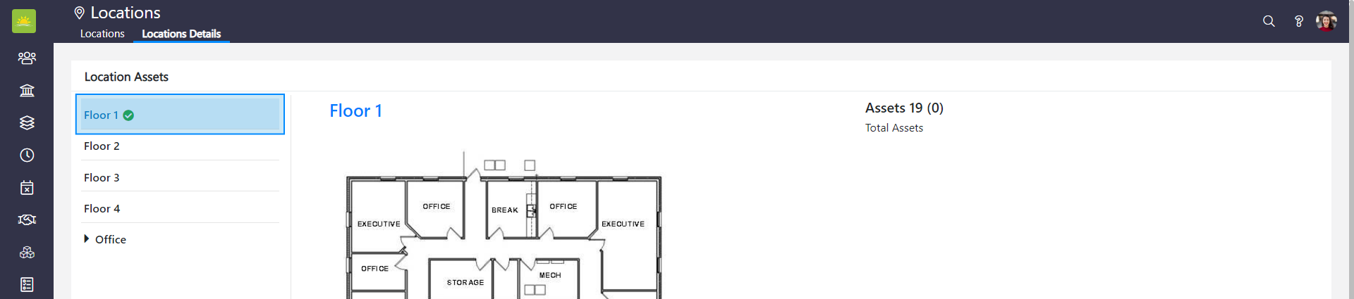 Open the Location Details page in the Assets module. The page with all locations will open.