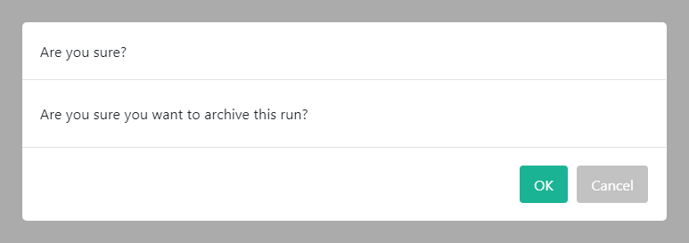 A confirmation request will pop up. If you are sure, click OK to archive the run. Click Cancel to abort the action and to return to the checklist runs window.