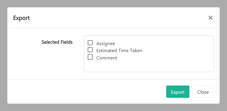 A modal Export window will pop up. Check the boxes you want to include in the report and click Export.