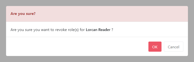 To minimize the risk of accidental deletion, you must confirm your intention to revoke the role(s). Click OK to revoke access.