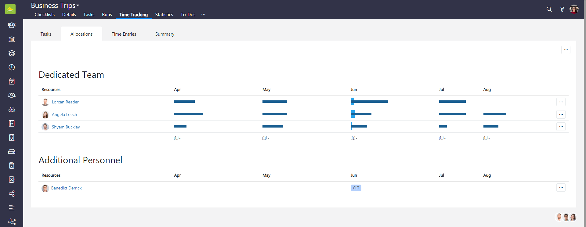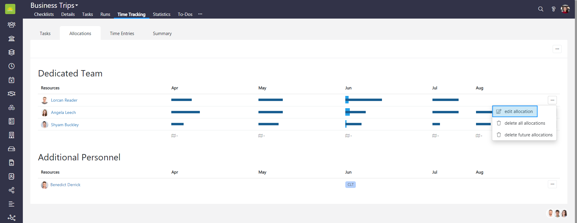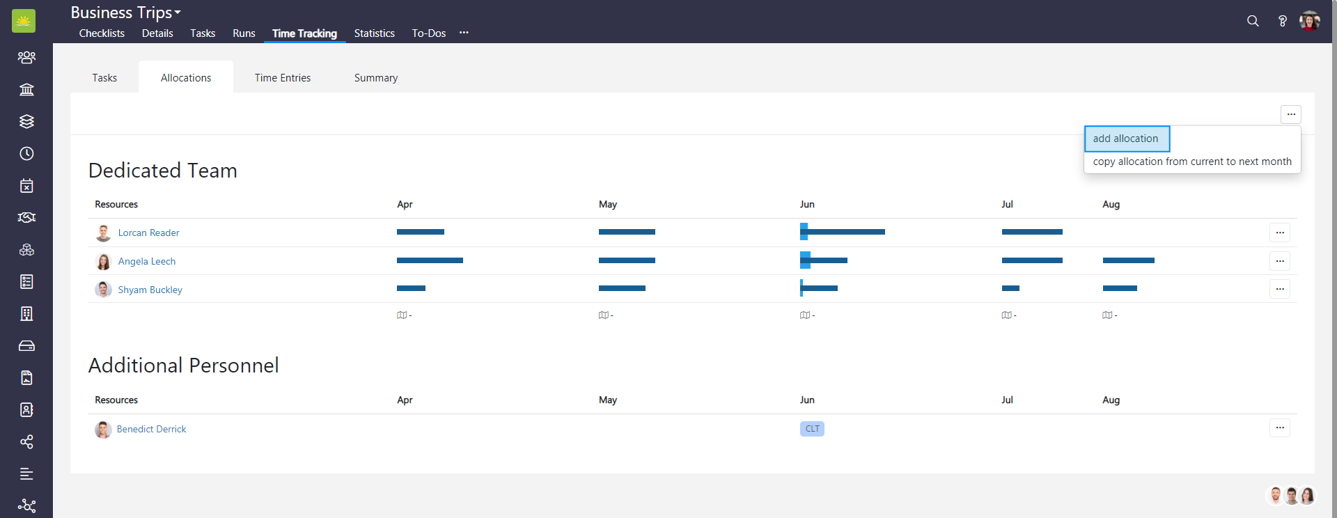 The Allocations page is divided into a Dedicated Team and Additional Personnel section.