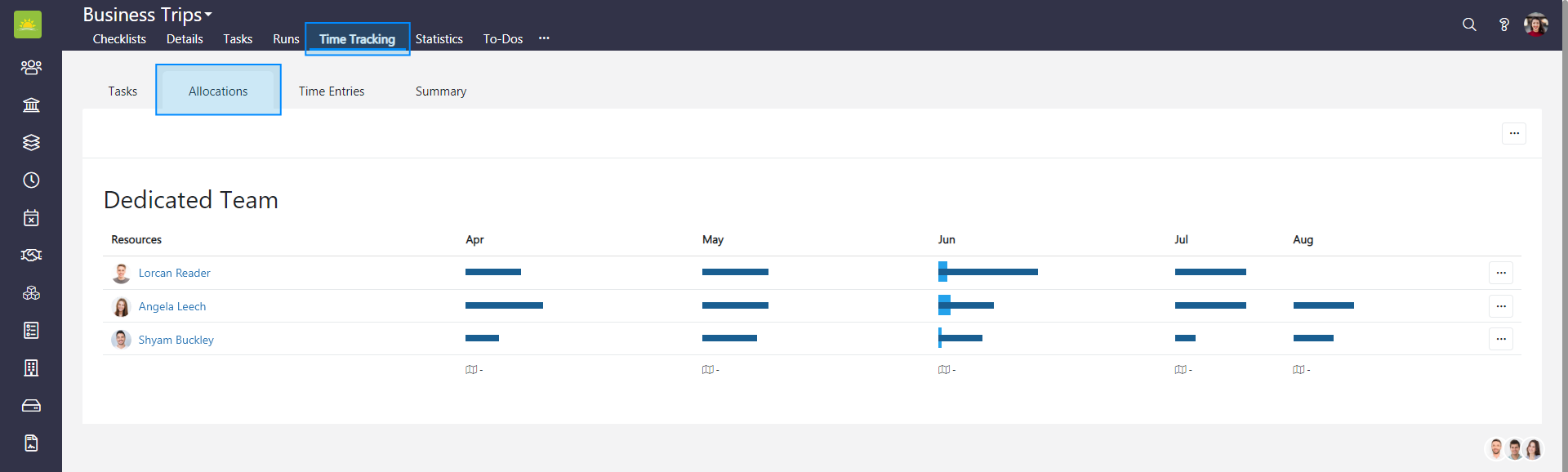 If you want to view the Allocations for a specific checklist, go inside the checklist and click the Time Tracking tab from there.