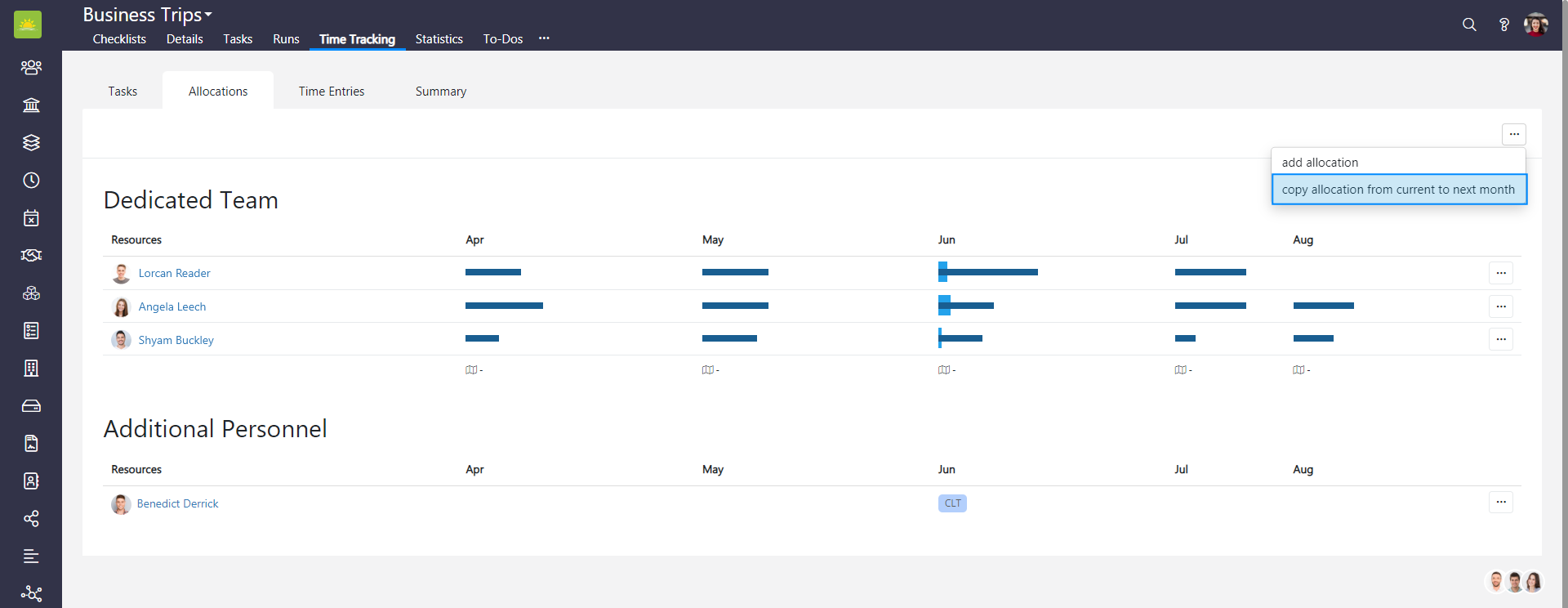 If you want to copy an allocation from the current month to the next month for a specific checklist, go into the checklist and click the Time Tracking tab from there, then click the Allocations tab.