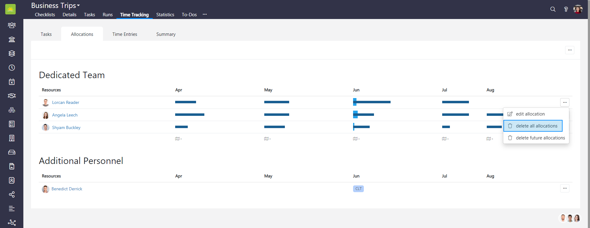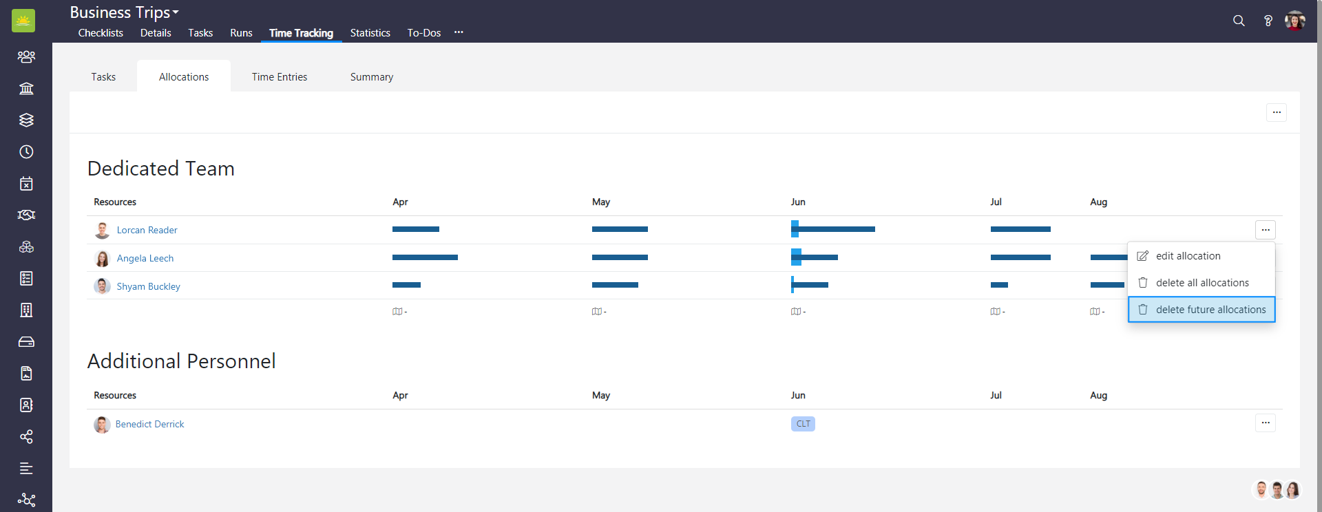 If you want to delete future allocations for a specific checklist, go into the checklist and click the Time Tracking tab from there, then click the Allocations tab.