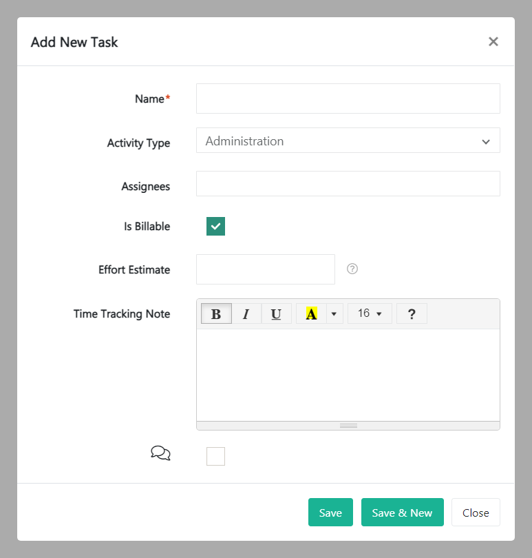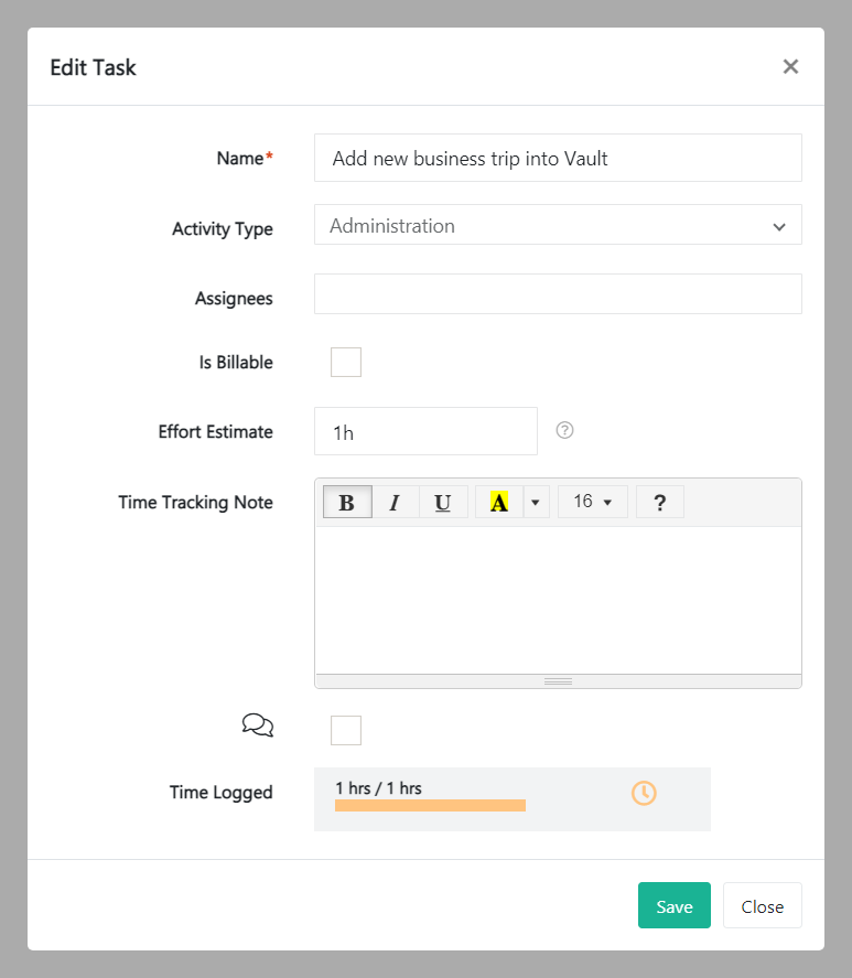 - Is Billable – This box is checked by default. Untick if the task is not billable.