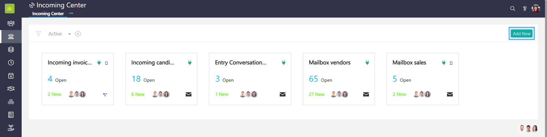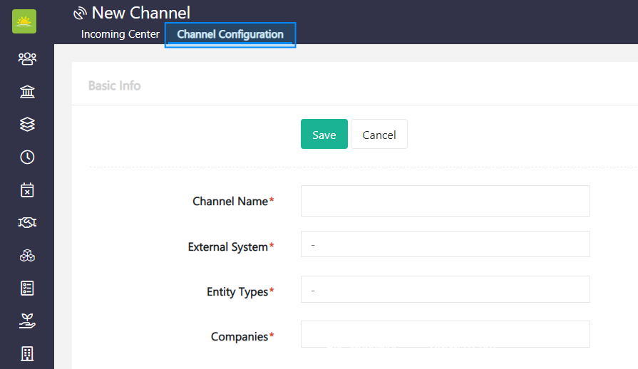 To create a new incoming channel, go to the Finance module and click the Incoming Center module.