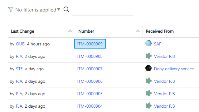 - Number – This is the incoming item number and follows the numbering pattern of your organization and is configured by an administrator.