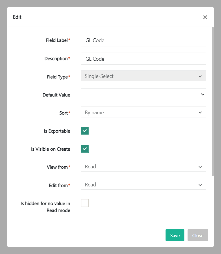 - Is hidden for no value in Read Mode – Tick this box if you want no value in Read Mode to be hidden from the view.