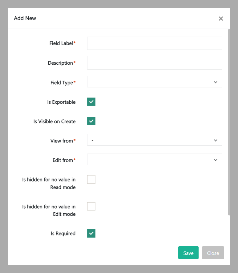 - Field Type – Select the field type from the dropdown menu. Field types are defined by the system.