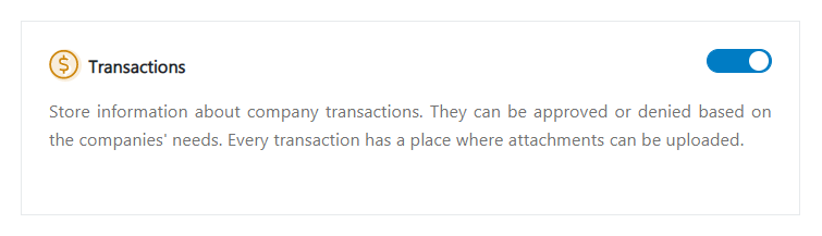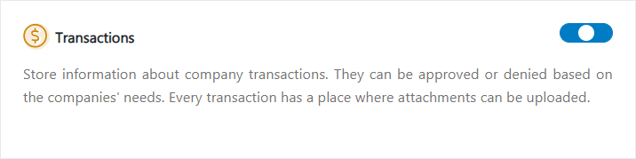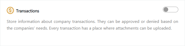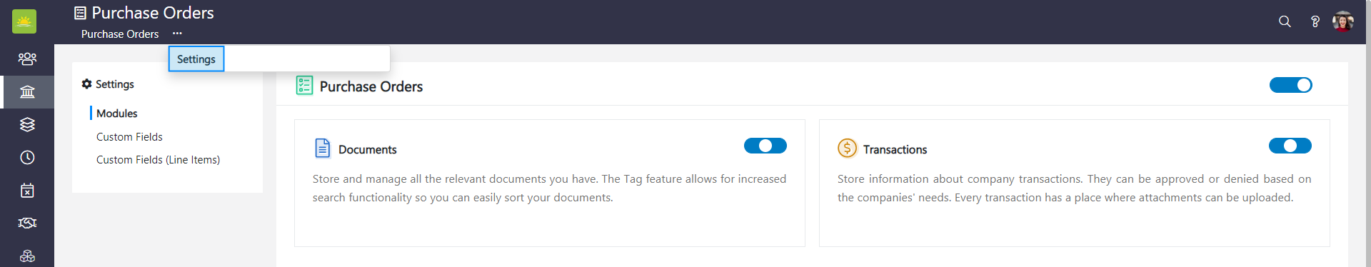 Click the toggle to activate each module individually. This means that users are allowed to activate or deactivate modules of a specific purchase order by themselves. Click the link to find out how to customize and configure the settings of a purchase order.