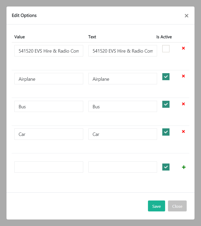 Note! Field options are values which you can find in the dropdown menu of that field.