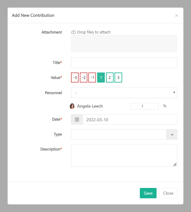 - Attachment – Upload any documents that are important to the contribution.