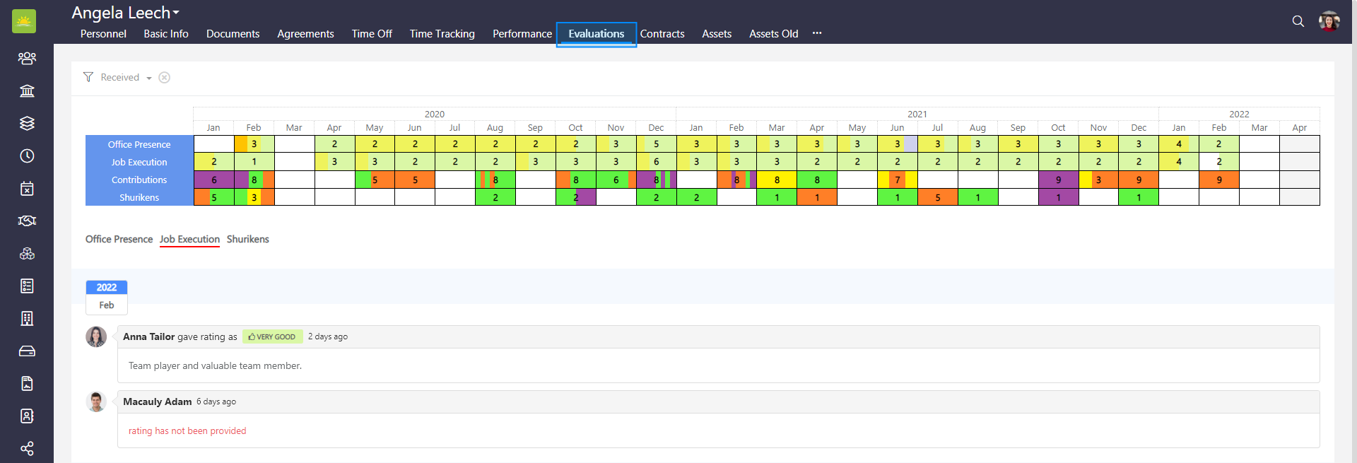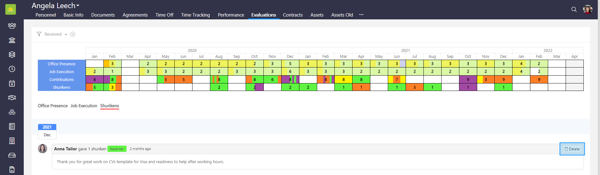- Tokens – This is a summary of all the tokens/shurikens the personnel received during a given month from their colleagues. This cannot be changed or edited, instead it’s automatically added. Click the link to find out more about Tokens.