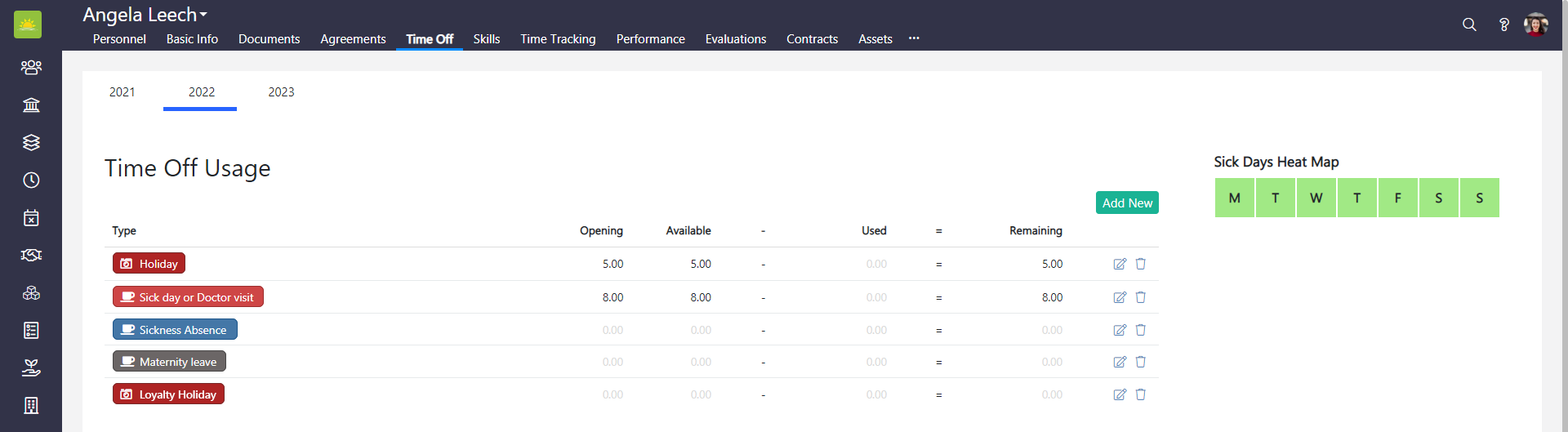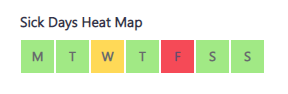 This section shows you any regularity regarding sick days so that you’re aware of the days the personnel has taken off. The Sick Days Heat Map follows personnel’s sick days history since the beginning of their employment.