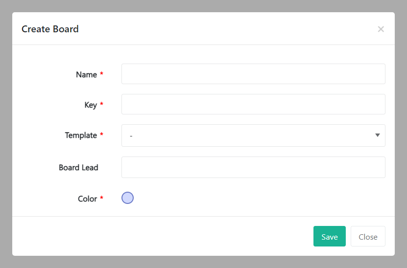 - Color – Choose a color for this board. This color will follow the board throughout the system.