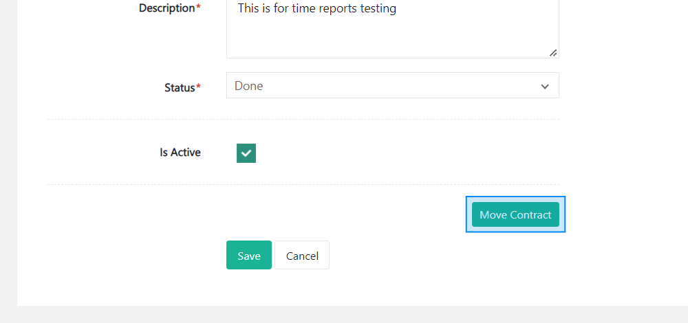 To move a contract, go to the Projects module and click the Contracts tab in a project's page.