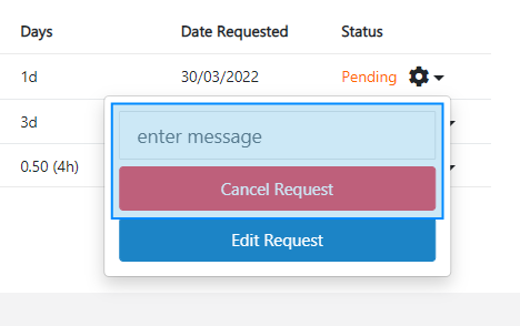 Note! You can only cancel pending or approved future requests.