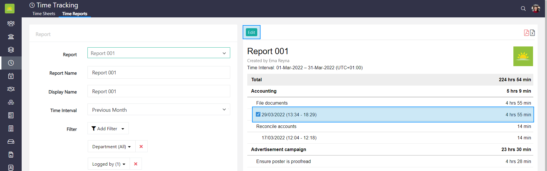 - Time Reports